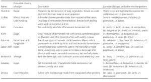 Tabla. Alimentos tradicionales basados en la fermentación por Lactobacillus.